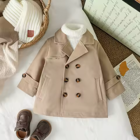 2025 New Fashion Baby Boys Trench Coat Autumn/Winter Jacket Long Sleeve Baby Double breasted Cardigan Clothes For 1-3Y